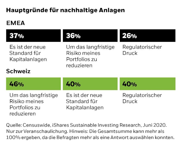 Der Trend zu nachhaltigen Anlagen ist nicht mehr aufzuhalten. Bereits heute berücksichtigen 78% der Anleger in Europa und 73% in der Schweiz Nachhaltigkeitskriterien bei ihren Anlageentscheidungen.