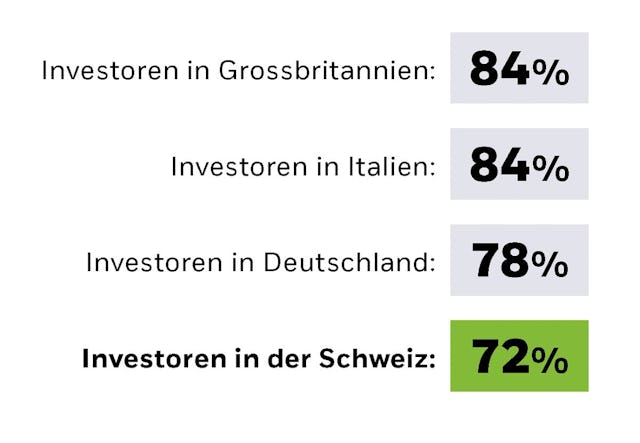 Der Trend zu nachhaltigen Anlagen ist nicht mehr aufzuhalten. Bereits heute berücksichtigen 78% der Anleger in Europa und 73% in der Schweiz Nachhaltigkeitskriterien bei ihren Anlageentscheidungen.