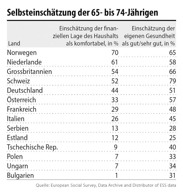 Grob geschätzt ist der Ausbau des schweizerischen Rentensystems (AHV, EL, BV) in den vergangenen Jahrzehnten für gut ein Drittel der Ausdehnung der behinderungsfreien Lebenserwartung verantwortlich. Ein weiteres Drittel ist die Folge des Ausbaus des Gesundheitssystems, und das letzte Drittel ist mit der allgemeinen Wohlstandsentwicklung und dem hohen Ausbildungsniveau in der Bevölkerung verbunden. Gute Gesundheit im Rentenalter und eine gute wirtschaftliche Absicherung sind eng verknüpft. In europäischen Ländern mit ausgebauter Altersvorsorge bleiben mehr Frauen und Männer auch im höheren Rentenalter aktiv, engagiert und offen für neue Ideen. In der Schweiz engagieren sich heute 45% der 65- bis 74-Jährigen in freiwilligen Tätigkeiten, und 62% sind kulturell aktiv. Neuerdings verstärken sich die Hinweise, dass eine gute Altersvorsorge, ein funktionierendes Gesundheitssystem und eine ausgebaute schulisch-berufliche Ausbildung sogar das Risiko einer Demenzerkrankung im Alter signifikant reduzieren.