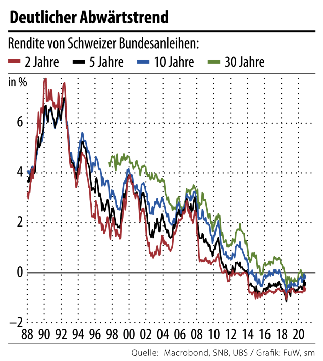 Eine weitere Lösung wäre theoretisch der Einsatz von Zins-Futures. Vereinfacht gesagt ist ein Zins-Futures ein standardisierter Terminkontrakt, der in erster Linie dazu dient, Zinsänderungsrisiken zu eliminieren. Im Gegensatz zum Eurozinsmarkt hat sich jedoch für Franken ein nur sehr limitierter Futures-Markt entwickelt. Insbesondere grosse Investoren steuern die Duration von Obligationenportfolios in Franken durch Zinsswaps.