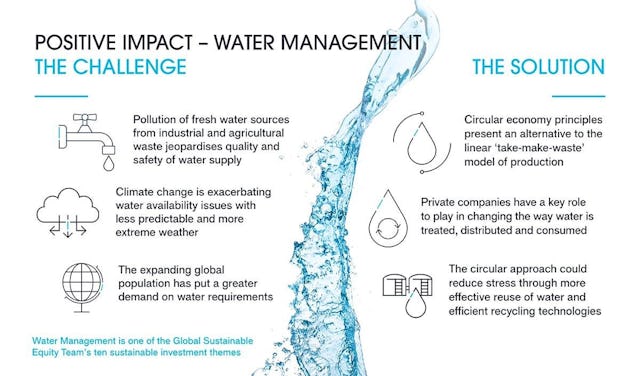 Eine zuverlässige, robuste und nachhaltige Wasserbewirtschaftung beginnt bei den Wasserunternehmen. Evoqua Water Technologies entwickelt Lösungen für Wasserversorger aus den Bereichen Industrie und Freizeit sowie kommunale Wasserwerke, die wiederum die breite Bevölkerung mit Wasser versorgen. Die Produkte und Dienstleistungen des Unternehmens decken den gesamten Lebenszyklus von Wasser ab, von der Gewinnung und Aufbereitung über die Abwasserbehandlung bis hin zur Wiederverwendung. Hamish Chamberlayne glaubt, dass Unternehmen wie Evoqua Veränderungen voranbringen können, indem sie die Effizienz steigern, die Wiederverwendung und das Recycling verbessern und die Lebensdauer von Produkten verlängern, für deren Herstellungsprozess Wasser erforderlich ist.