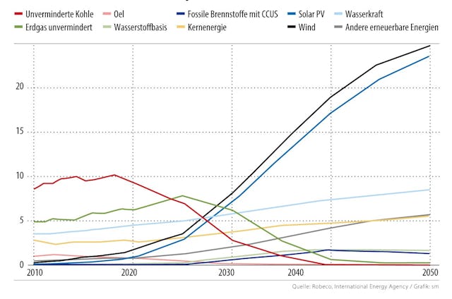 Die Kosten für Solarenergie sind seit dem Jahr 2000 um 90% gesunken, womit sie heute die günstigste Stromquelle ist. Während im Jahr 2020 nur 9% der Stromerzeugung aus Wind- und Sonnenenergie stammten, wird erwartet, dass diese Quellen bis 2030 bereits 40% und bis 2050 möglicherweise 70% beitragen werden.